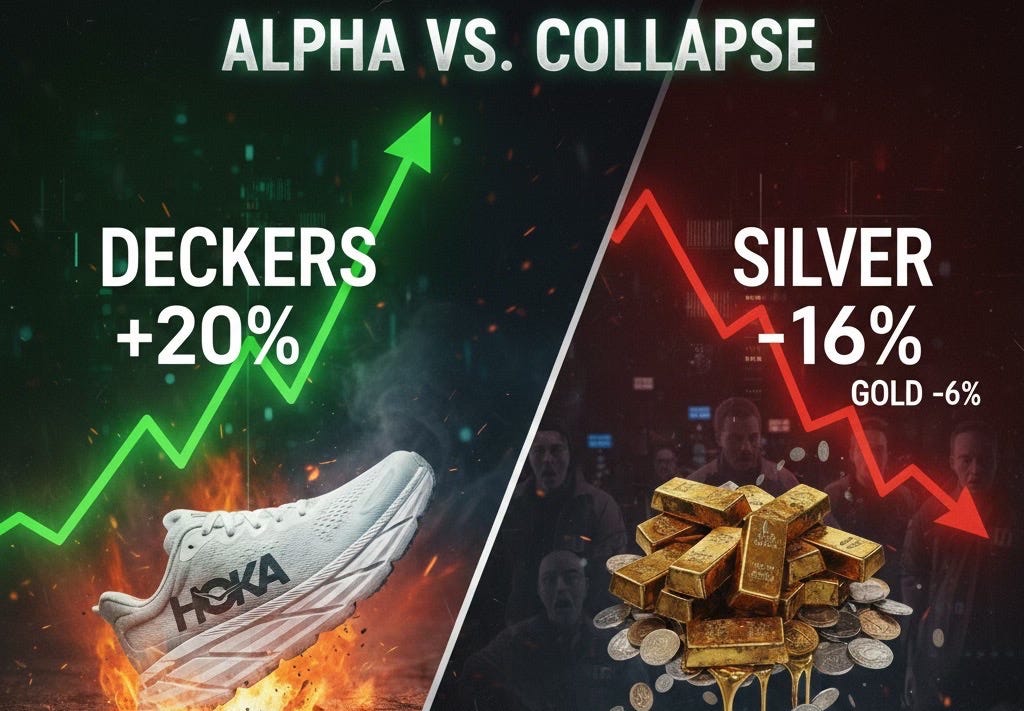 Alpha in the Apocalypse: Deckers +20% While Silver Crashes 16%