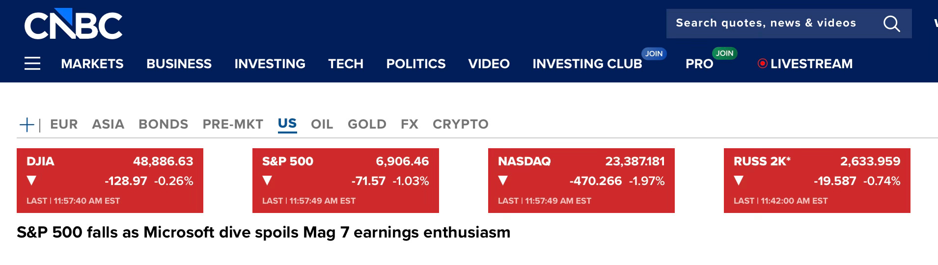 The broader market is currently gripped by a fit of institutional instability, yet today’s Comcast earnings release has provided a definitive answer to a question the “Smart Money” was too afraid to ask. Why are we finding safety in the “unloved” while the benchmarks melt down? As I write this, the NASDAQ is under significant pressure, shedding over 400 points as momentum-driven strategies unwind.