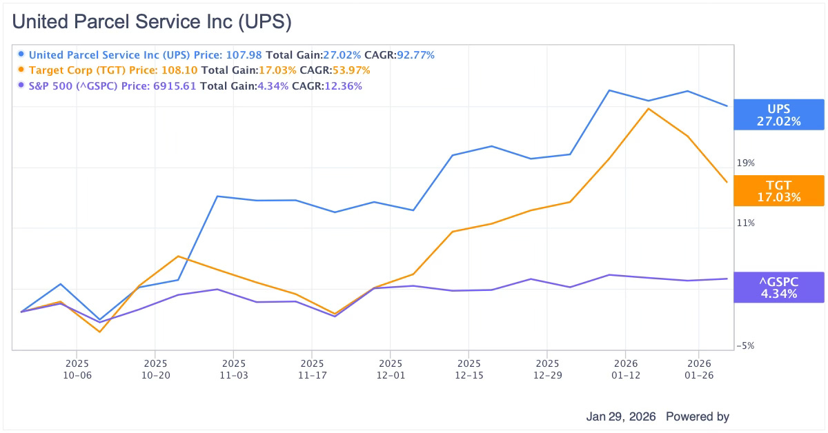 UPS: Despite the “Amazon Illusion,” UPS maintains a logistical moat that allowed it to offer a 6.98% yield at a time when the market was fleeing from tangible assets.