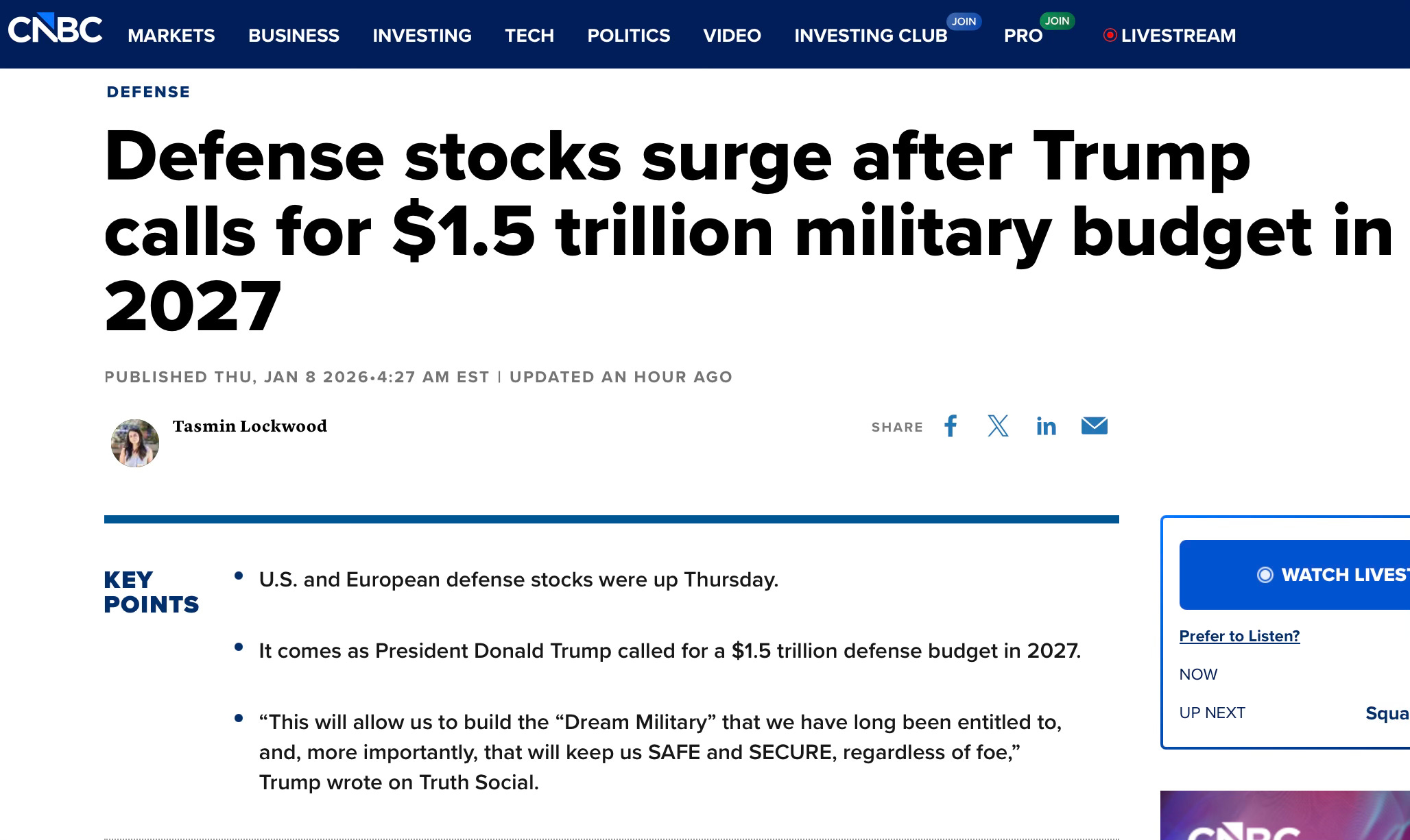For the last week, the cameras have been pointed at the jungles of Venezuela (“Operation Southern Spear”) and the ice of Greenland. The narrative being fed to the public is one of strength, a muscular restoration of order. Just this morning, the mainstream caught up to the reality we have been tracking for months. CNBC is reporting a massive surge in defense stocks as the administration signals historic increases in military spending, forcing Europe to underwrite the American arsenal.