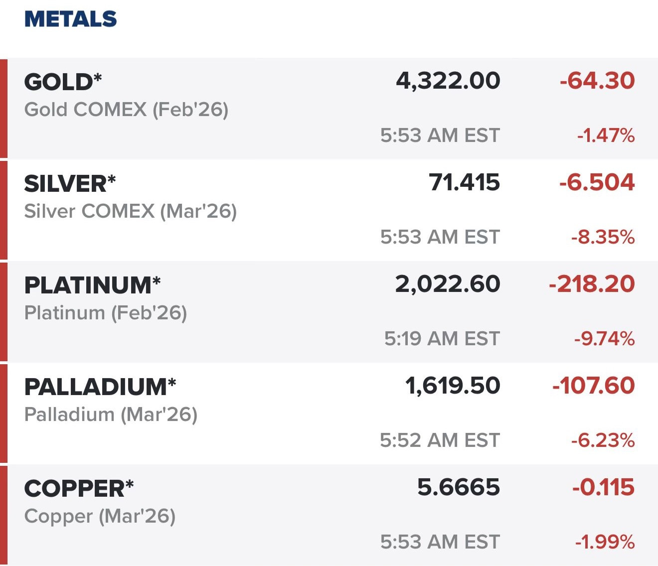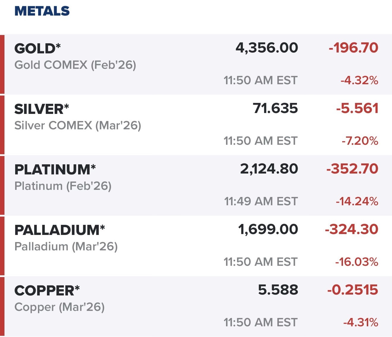 While the “Empire” postured, the markets delivered a brutal, silent verdict. On December 29 Platinum collapsed by nearly 14%. Palladium shed over 16% of its value. Even Gold and Silver, the supposed divine constants of the prepper portfolio, dropped approximately 4.5% and 7.5% respectively. The carnage continued on December 31.